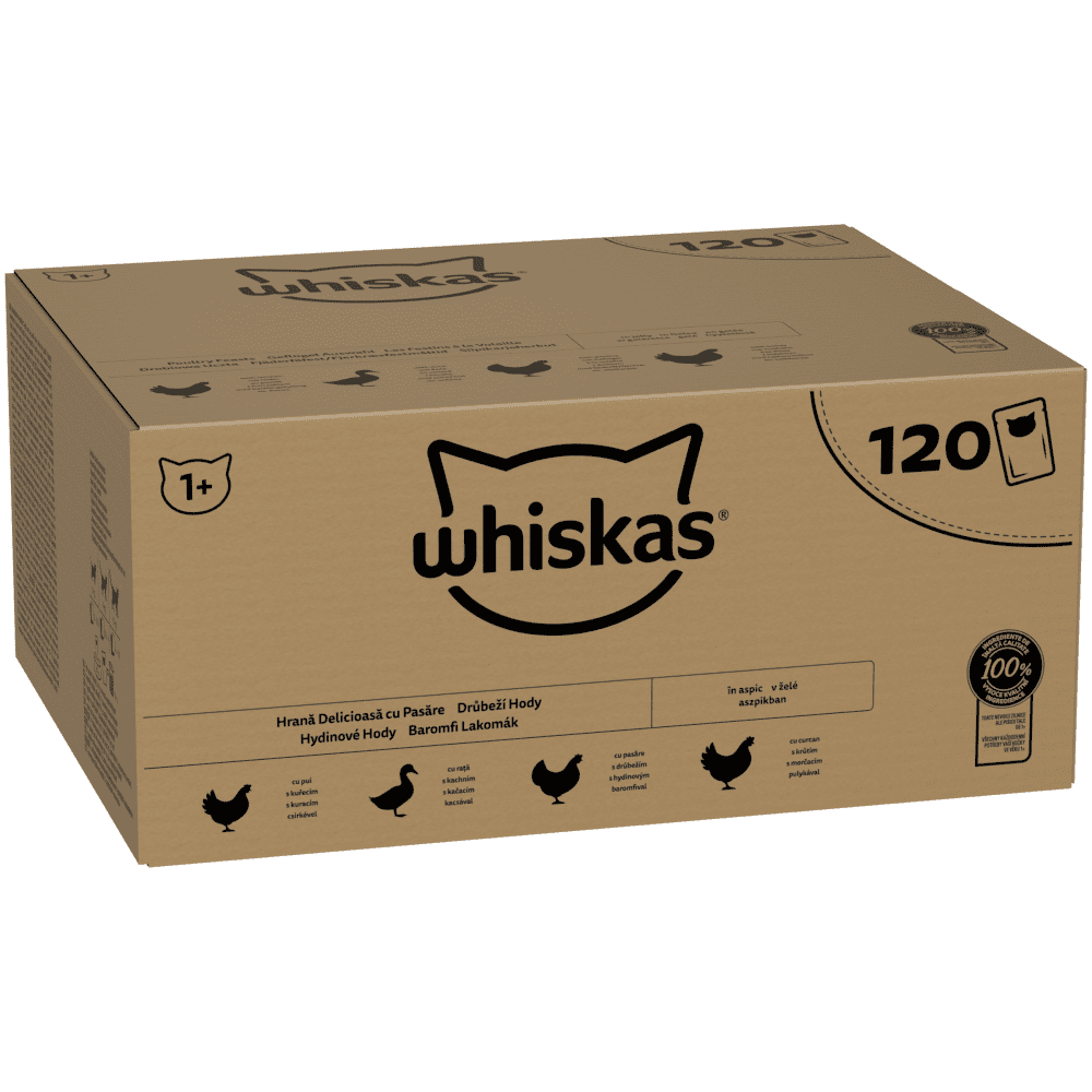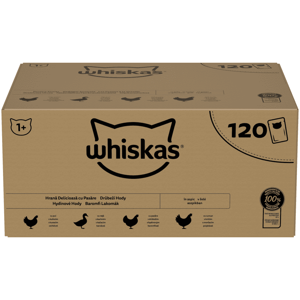 Whiskas pouches selekcija peradi u želeu za odrasle mačke 120 × 85 g. Zahvaljujući posebnoj pripremi i prirodnom okusu visokokvalitetnih sastojaka, naše popularne hrane privući će vašu mačku k zdjelici brže nego ikad prije! Od razigranih mačića do starijih kućnih ljubimaca, naši su ukusni recepti osmišljeni kako bi razveselili predenje u svakoj dobi…u vrijeme obroka i izvan njega.