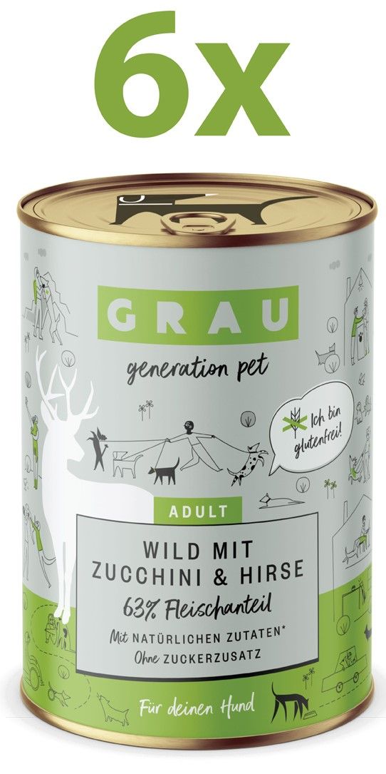 Mokra hrana bez glutena za odrasle pse sastoji se od divljači, tikvica i prosa. Savršeno je hranjenje za odrasle pse, ali je pogodno i za pse s intolerancijom jer ne sadrži gluten. Pakiranje sadrži 6 konzervi (6 × 400 g).