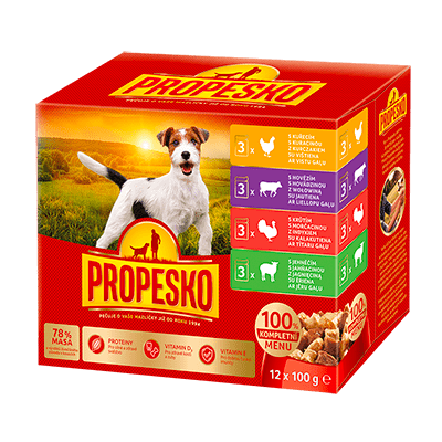 Propesko mokra hrana za pse, piletina + govedina + puretina + janjetina 4 x ( 12 x 100g )