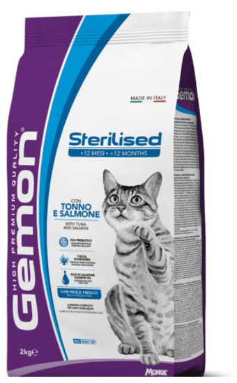 Gemon Sterilised hrana za sterilizirane mačke od 12. meseca dalje. Lako probavljiva suha hrana sadrži probiotike za dobru probavu, lososovo ulje za zdravu kožu te je bez dodanih bojila i umjetnih konzervansa.