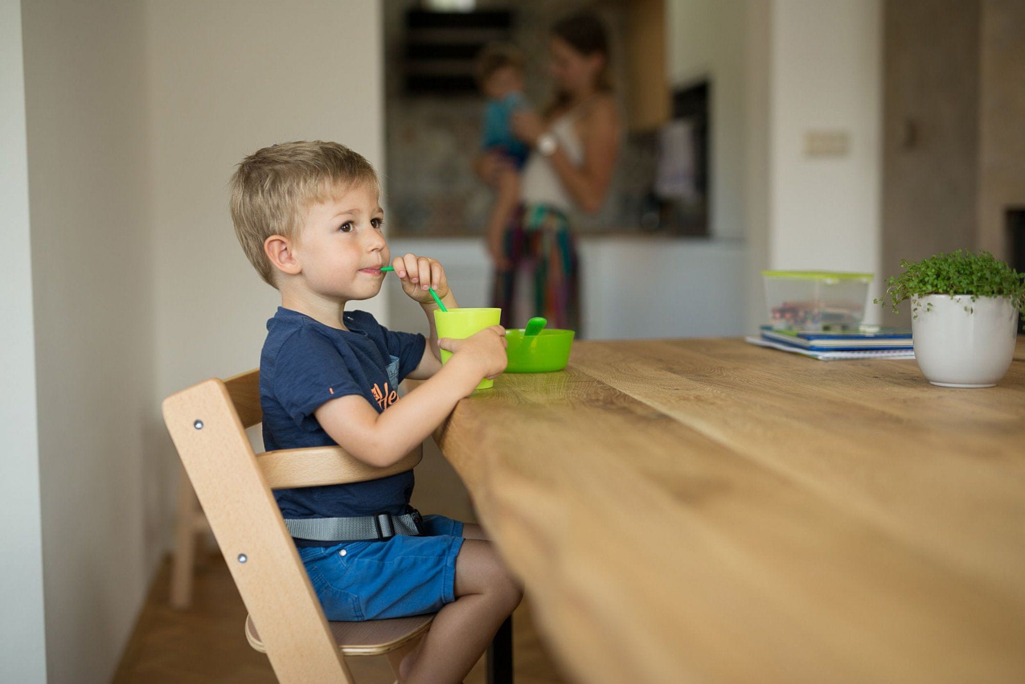 Drvena stolica za hranjenje od bukovog drveta, prikladna za djecu koja već samostalno sjede (od 6. mjeseca nadalje).  Cijeli opis