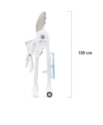 - Podesiv pladanj → omogućuje jednostavno postavljanje djeteta na stolicu i podešava udaljenost pladnja u tri položaja. Zahvaljujući dodatnom, dvostrukom pladnju, cijeli se proizvod izuzetno lako čisti.