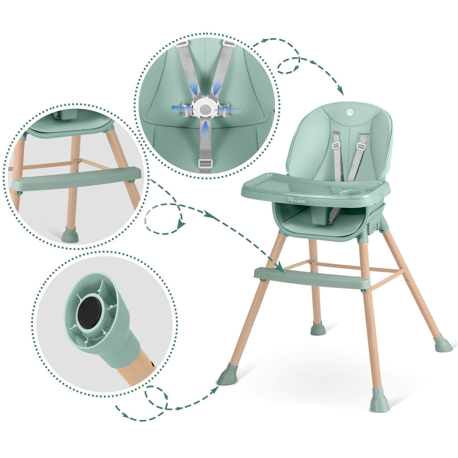Marka Nukido stvorena je kako bi dječji proizvodi bili ne samo lijepi, već i funkcionalni. Proveli smo brojne testove kako bismo osigurali da visoka stolica koju primate ispunjava najviša očekivanja.