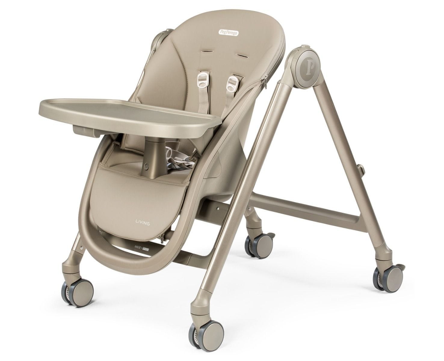 Moderna dječja stolica s mogućnošću kretanja od 360°, uklonjivom navlakom i dvostrukim pladnjem prikladna je od rođenja.