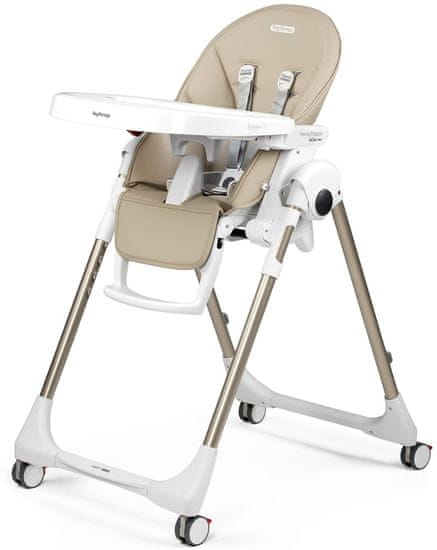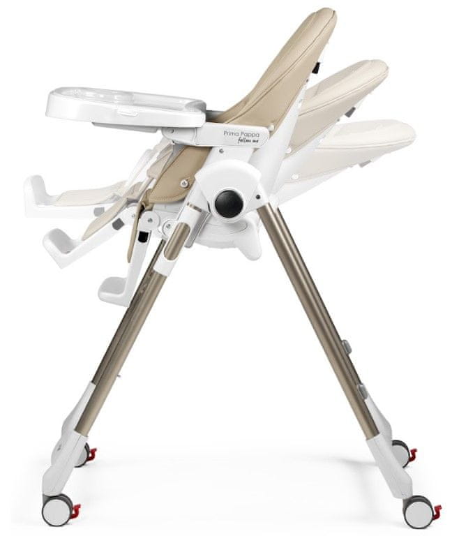 Može se koristiti od rođenja kao ležaljka s podesivim kutom naslona za udobno spavanje bebe. Podesiva visina u 7 razina, s mogućnošću uklanjanja pladnja kako bi se dijete moglo pridružiti obiteljskom stolu. Meko podstavljeno sjedalo s 5-točkovnim sigurnosnim pojasom i anatomskom zaštitom nudi sigurnost i udobnost. Četiri kotača s kočnicama omogućuju lako kretanje po prostoriji, a sklopiva značajka osigurava jednostavno skladištenje. Navlaka od eko kože ili nanotehnološke tkanine lako se čisti, a pladanj se može prati u perilici posuđa.