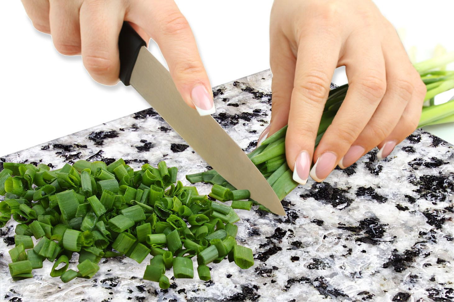 ✔ Staklena daska za rezanje – higijenska i otporna na mirise, idealna za sjeckanje povrća, mesa ili kruha.