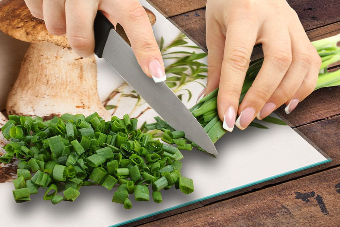 Staklena daska za rezanje – higijenska i otporna na mirise, idealna za sjeckanje povrća, mesa ili kruha. ✔