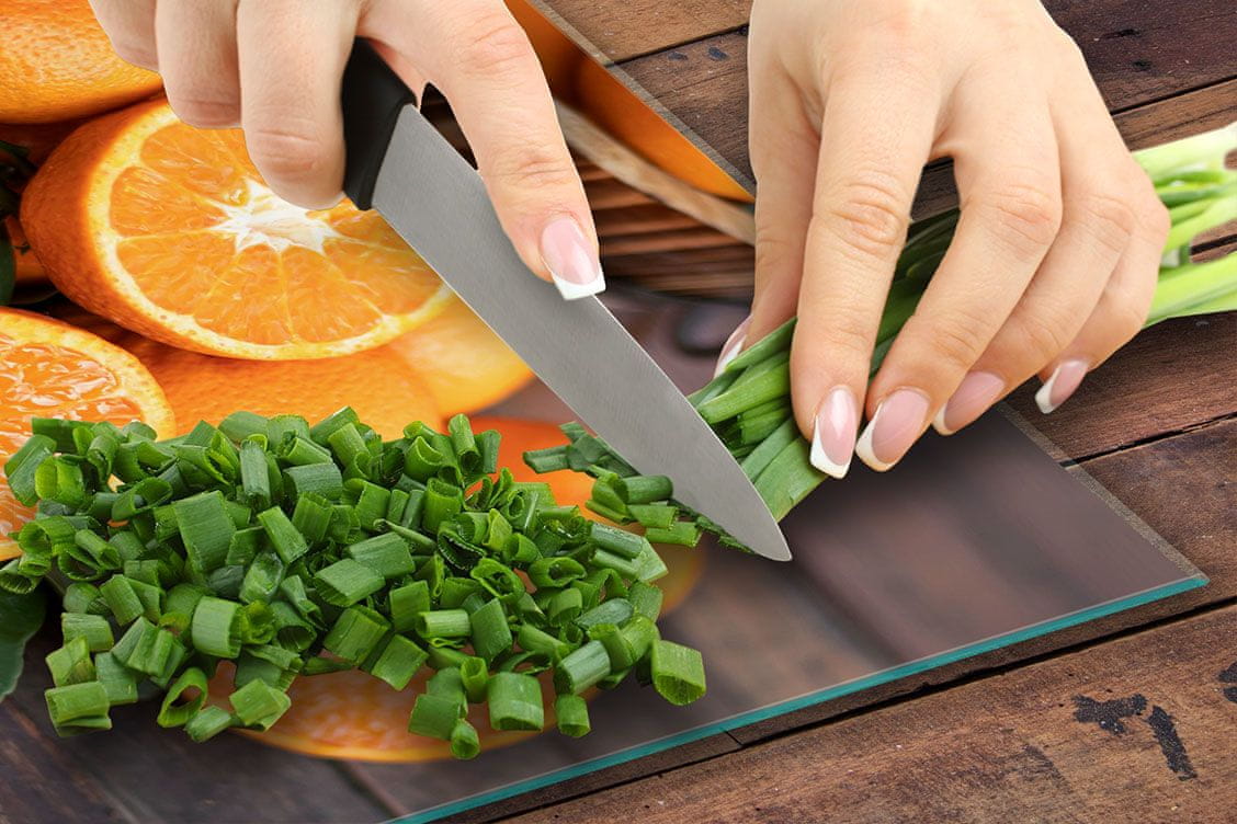 Staklena daska za rezanje – higijenska i otporna na mirise, idealna za sjeckanje povrća, mesa ili kruha.