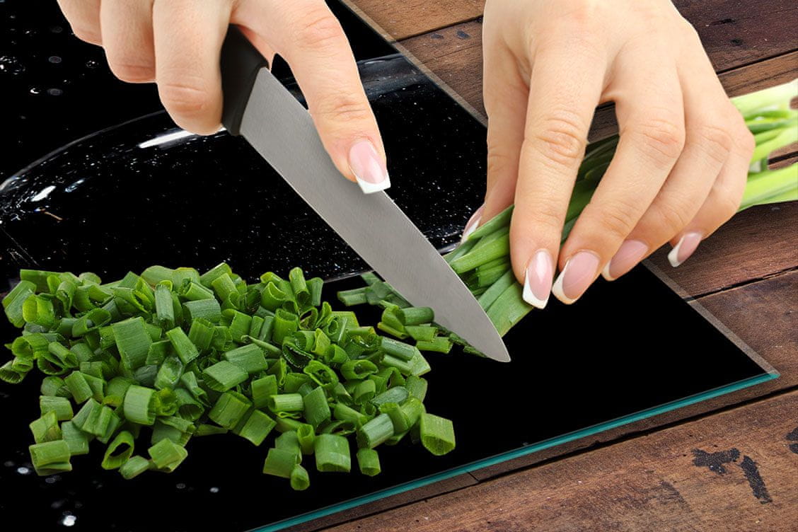 Staklena daska za rezanje – higijenska i otporna na mirise, idealna za sjeckanje povrća, mesa ili kruha.