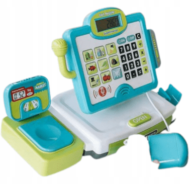 Free2Play blagajna s mikrofonom, virtualnim novcem, skenerom, kolicima za kupovinu i ostalim dodacima koji pomažu djetetu da se osjeća kao trgovac. Pogodno za mlade trgovce starije od 3 godine.