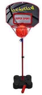U kompletu su koš s pločom, obručem i mrežom, te lopta, pumpa i igla.