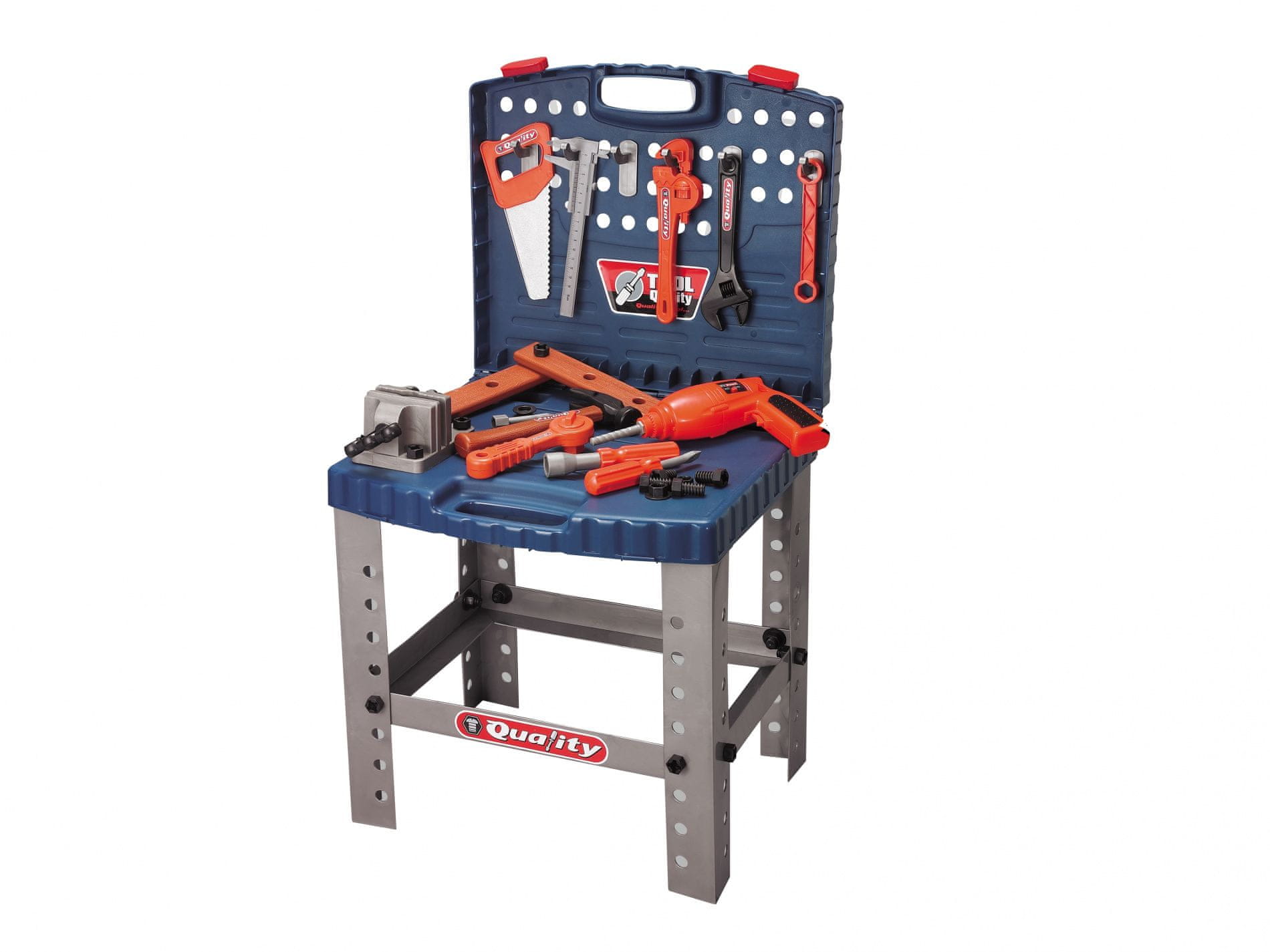 Kofer sadrži sve što mali majstor treba – pilu, odvijač, čekić, francuski ključ, vijke, škripac i druge dodatke.