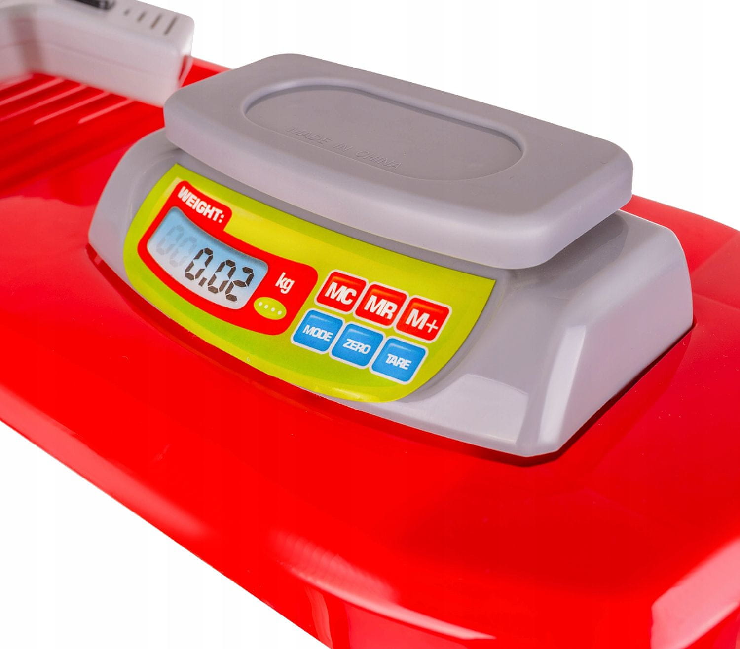 Blagajna ima tipku za unos robe za naplatu, tipku za dodavanje dodatnih artikala za kupovinu, prozor u kojem se prikazuju pojedini proizvodi, tipku za potvrdu i otvorenu ladicu za gotovinu. Na blagajnu je pričvršćen skener zahvaljujući kojem dijete može skenirati proizvode i tako se osjećati kao pravi prodavač. Samo pritisnite gumb i skener će zasvijetliti i reproducirati karakterističan zvuk skeniranja proizvoda. Na blagajni se nalazi i vaga na koju možete staviti voće ili povrće. Svi proizvodi su lagani, šareni i vrlo precizno imitiraju pravu robu u trgovini.