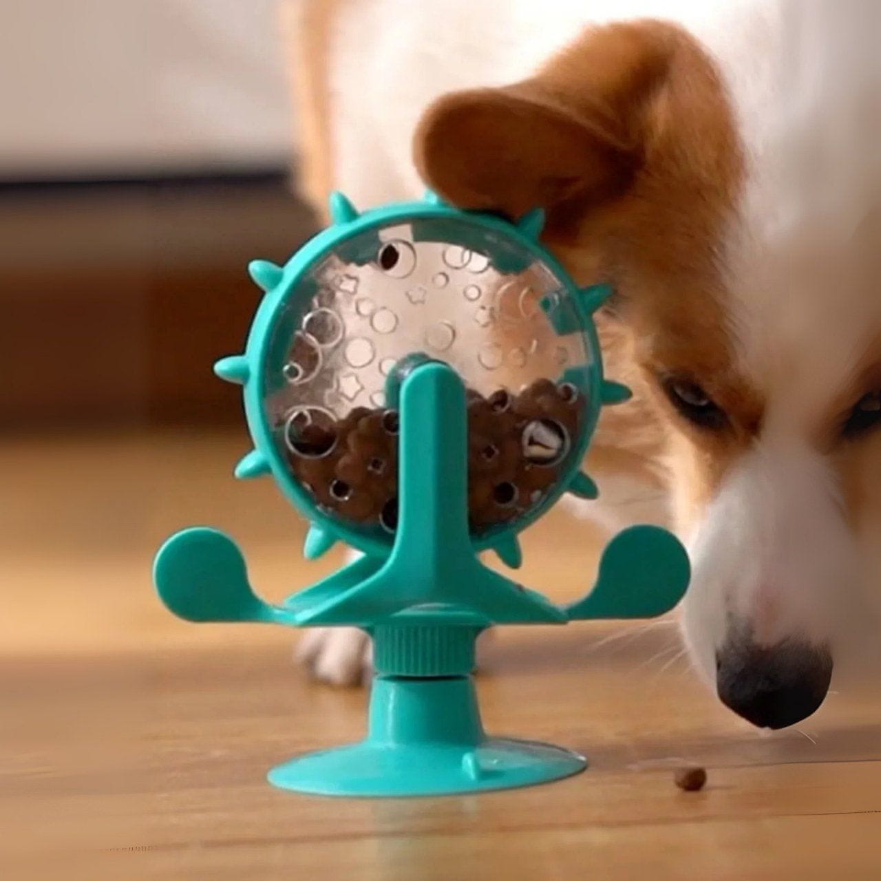 Poslastice ili granule oslobađaju se kada kućni ljubimac okreće igračku.