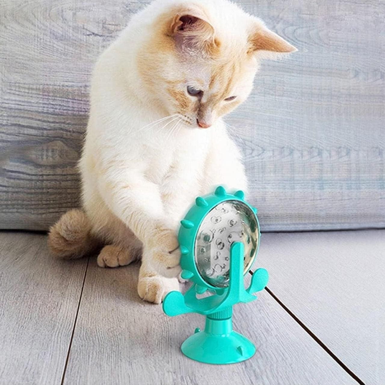 Netscroll Interaktivna rotirajuća igračka za doziranje poslastica za mačke i pse, 360°, s vakuumskim postoljem, plava, WheelToy