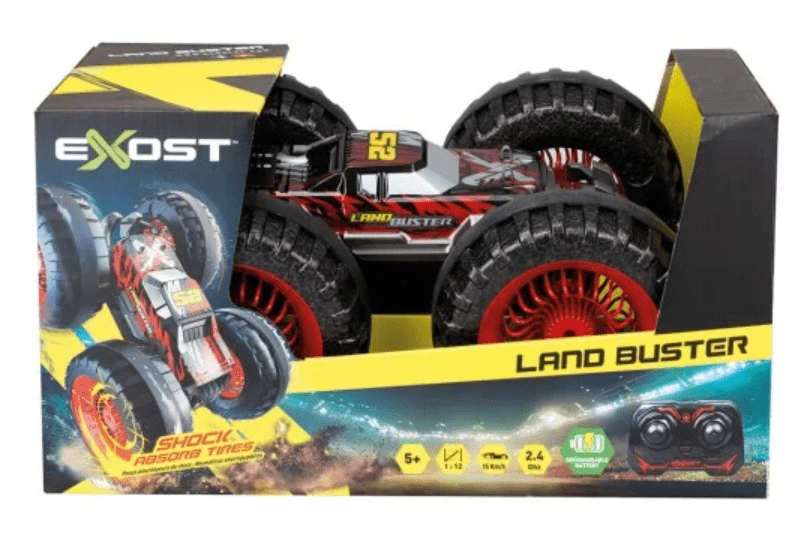Silverlit Land Buster automobil na daljinsko upravljanje. Opremljen EPP gumama i protuudarnim opružnim prstenom, može izvoditi okretanja i okomita kretanja uz maksimalnu apsorpciju udara.