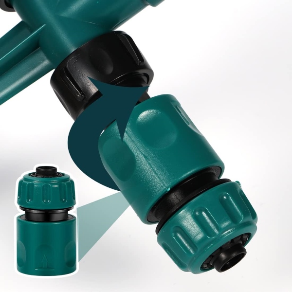 S ROTOSPRITZ dvostrukim mlaznicama za vodu možete bez napora spojiti više prskalica za pokrivanje većih površina. Jednostavno spojite dvije ili više ROTOSPRITZ jedinica zajedno za dvostrano navodnjavanje, osiguravajući da cijeli vaš vrt dobije savršenu količinu vode. Ova besprijekorna povezanost čini ga idealnim za velike travnjake i prostrane vrtove.
