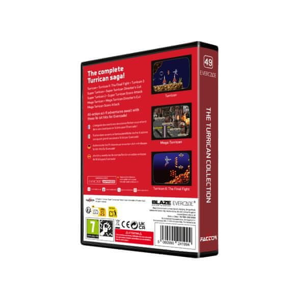 Evercade Turrican kolekcija Turrican kolekcija za Evercade konzolu uključuje 8 naslova iz kultne serije pucačina s mogućnošću trčanja i pucanja. Uključuje Amiga klasike: Turrican, Turrican II: The Final Fight i Turrican 3, zajedno s nastavcima za više konzola poput Mega Turrican, Super Turrican 2 i drugih. Set također uključuje redateljske verzije Mega Turrican i Super Turrican kao poseban bonus! Prednosti: – Uključuje 8 naslova, uključujući Turrican, Turrican II: The Final Fight, Turrican 3 i druge! – Uključuje priručnik u boji. – Žanr: Pucanje, Akcija. – Kompatibilno sa svim Evercade modelima (Handheld, Evercade VS, Evercade Vs-R, Evercade Exp, Evercade Exp-R, Evercade Alpha) i Super Pocket konzolama. – Napomena: Vašem Evercade sustavu može biti potrebno ažuriranje softvera na najnoviju verziju kako biste u potpunosti uživali u ovom ulošku! Popis igara: – Turrican – Turrican II: The Final Fight – Turrican 3 – Super Turrican – Super Turrican Director's Cut – Super Turrican 2 – Super Turrican Score Attack – Mega Turrican – Mega Turrican Director's Cut – Mega Turrican Score Attack. tehnički podaci: