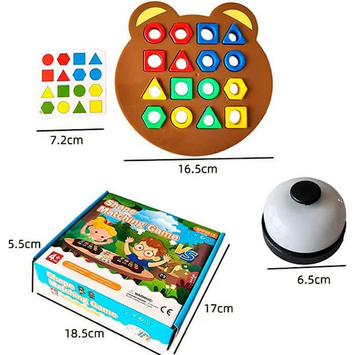 Netscroll Didaktička društvena igra za djecu, učenje boja i oblika, za 1-2 igrača, s karticama, pločama i zvoncem, razvoj logike i koordinacije, ShapeMatchingGame
