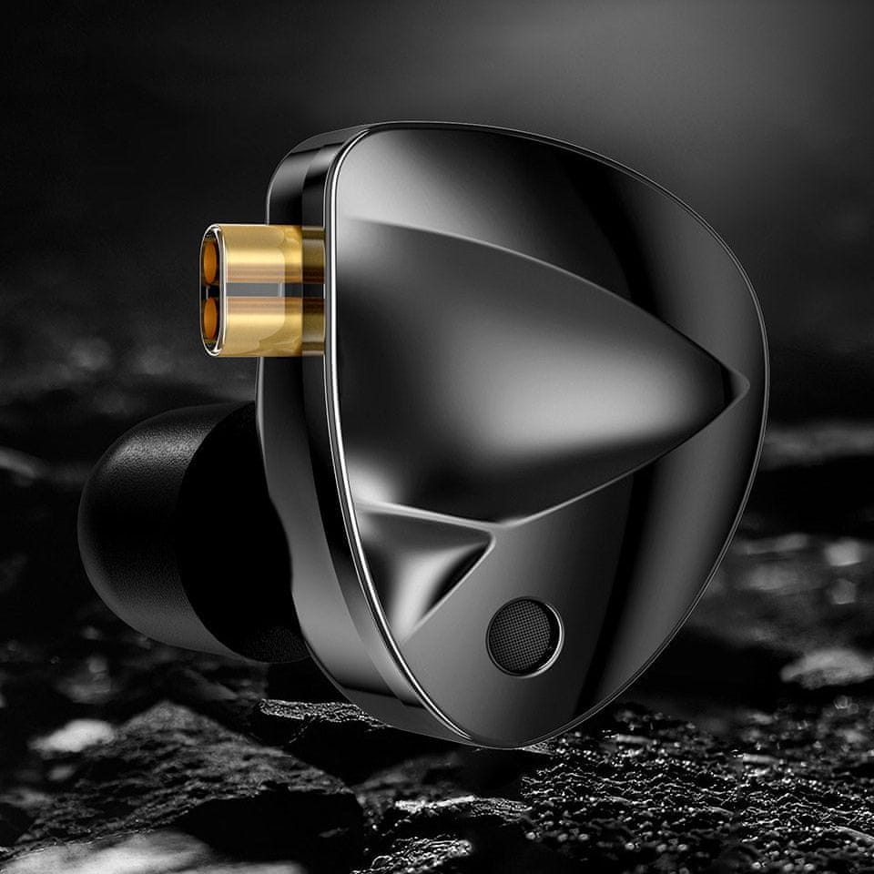 Slušalice su opremljene 10 mm dinamičkim drajverom s dvostrukim magnetom i dvostrukom komorom, koji pruža snažan subbas i dinamične zvučne performanse. Frekvencijski raspon od 7 Hz do 45 kHz pruža bogat zvuk sa širokim rasponom tonova, omogućujući vam da u potpunosti uživate u svojoj glazbi.Materijali i konstrukcija