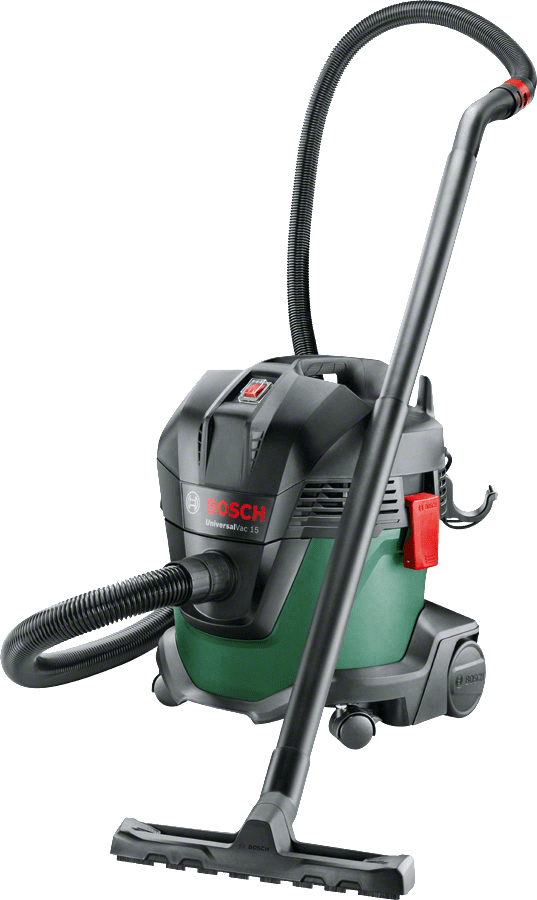 Prikladno za suho i mokro usisavanje.Usisavač UniversalVac 15 daje najbolje rezultate na svim vrstama materijala, gruboj prljavštini u radionici, sitnoj prašini ili vodi u podrumu. Tijekom usisavanja imat ćete pri ruci potreban pribor, a kabel i crijevo mogu se učinkovito ukloniti. Svi Bosch električni alati Home & Garden mogu se opremiti univerzalnim adapterom za usisavač, što omogućava izravno usisavanje prašine. Suho i mokro čišćenje olakšat će ugrađeni filter uložak, koji se ne mora mijenjati. Volumen spremnika za skupljanje prljavštine je 15 L. Usisavač ima funkciju puhanja, što će vam uvelike pomoći pri ispuhivanju lišća. Usisavač omogućava rad čak i na teško dostupnim mjestima zahvaljujući uskim mlaznicama i cijevima duljine 2,2 m. Opseg isporuke: