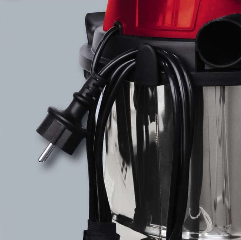 TC-VC 1812 SMokro-suhi usisavač Einhell TC-VC 1812 S je fleksibilan i moćan usisavač, koji je namjenjen za jednostavno mokro i suho čišćenje i usisavanje površina. Posjeduje moćan, 1250 W motor, 12 l posudu od nehrđajučeg čelika te 1,5 m dugu cijev s 36 mm promjera. Usisavač je jednostavan za održavanje. Usisavač se može pohvaliti sa širokom paletom dodataka. Velika usisna cijev je pričvršćena na kombinirani dio mlaznice za tepihe i glatke podove. Napredni pjena filter štiti motor od mokrog otpada, što bi moglo dovesti do nakupljanja prljavštine i prijevremenog trošenja. |