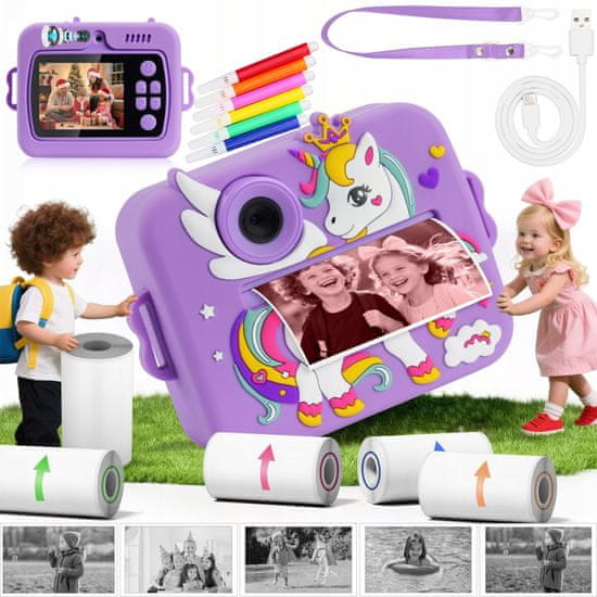 Dexxer Dječji LCD instant fotoaparat s printerom + 3 ljubičaste trake