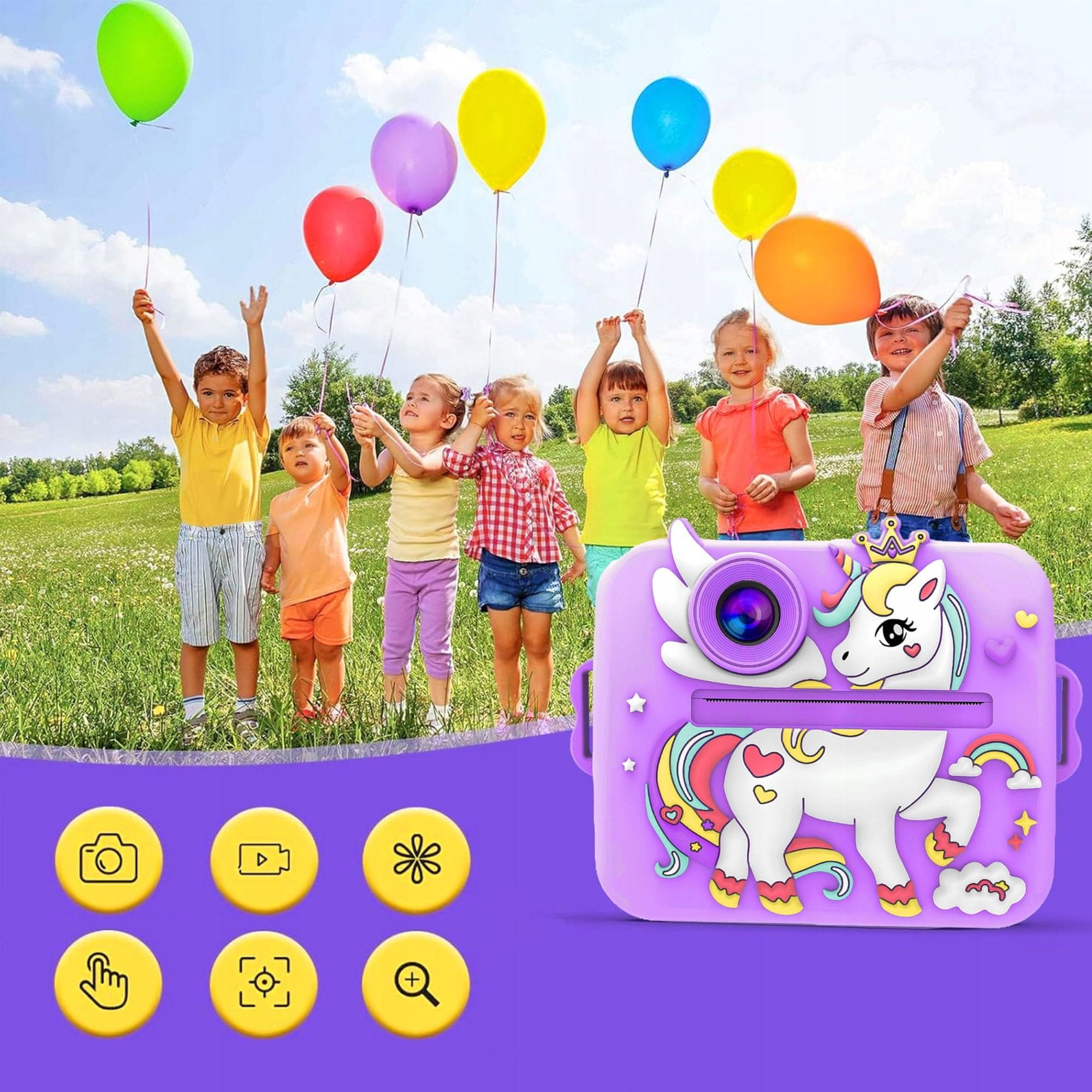Dječji fotoaparat Jednorog PRO za trenutni ispis jedinstveni je uređaj s ugrađenim termalni pisač in dvije kamere , koji vam omogućuje trenutno fotografiranje, snimanje videozapisa i ispis fotografija bez tinte. Njegov šareni, šarmantni dizajn potiče kreativnu igru, a jednostavno rukovanje čini ga izvrsnim poklonom za svakog mladog fotografa.
