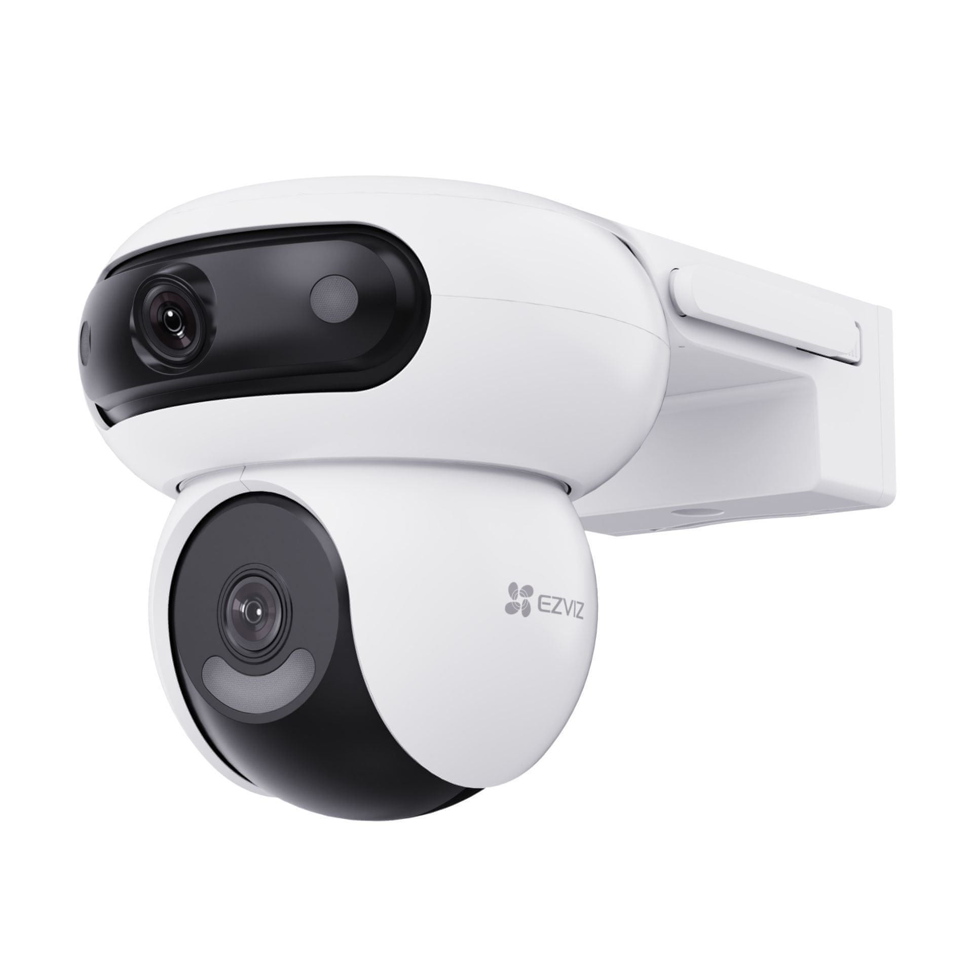 EZVIZ H90 Dual je inovativna vanjska IP kamera s dvostrukim rotirajućim lećama koje omogućuju istovremeno nadgledanje dvaju širokih područja ili detaljnije snimanje iste aktivnosti. Sustav s tri motora omogućuje glatko pomicanje obje kamere i smanjuje mrtve kutove.