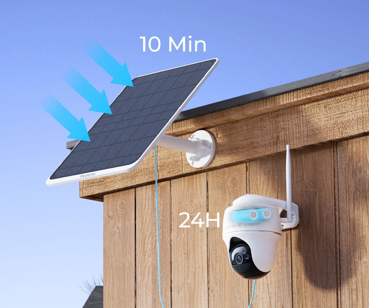 Reolink solarni panel 3 je robusno i učinkovito rješenje dizajnirano za kontinuirano solarno napajanje vaših Reolink kamera na baterije, eliminirajući potrebu za čestim punjenjem.