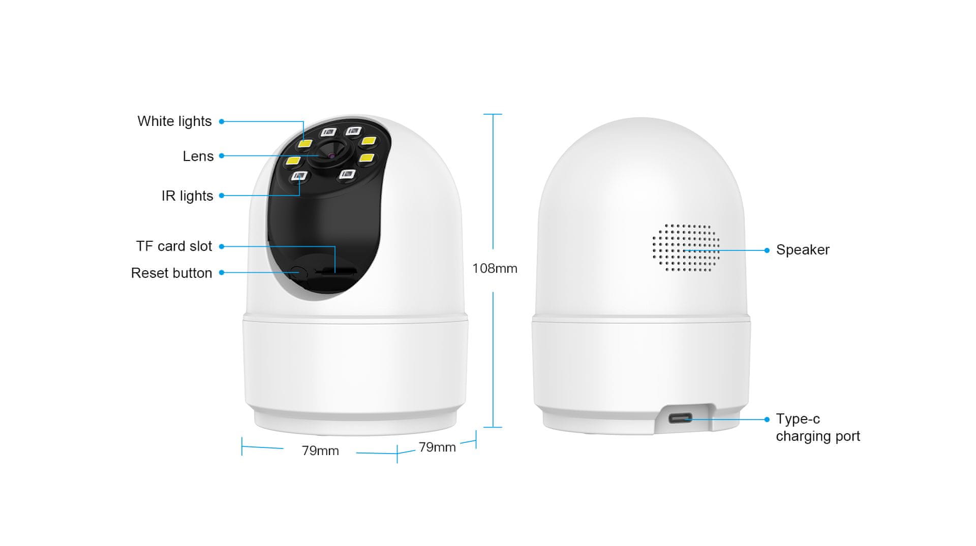 Napredni i sofisticirani dizajn IP nadzorne kamere RC994WS nadopunjen je detekcijom pokreta, dvosmjernim zvukom, IR noćnim vidom, alarmnim porukama detekcije pokreta i, što je najvažnije, panoramskim pogledom od 360°, koji vam omogućuje da vidite svaki kutak prostorije (5MP HD rezolucija). Kamera također podržava detekciju zvuka.