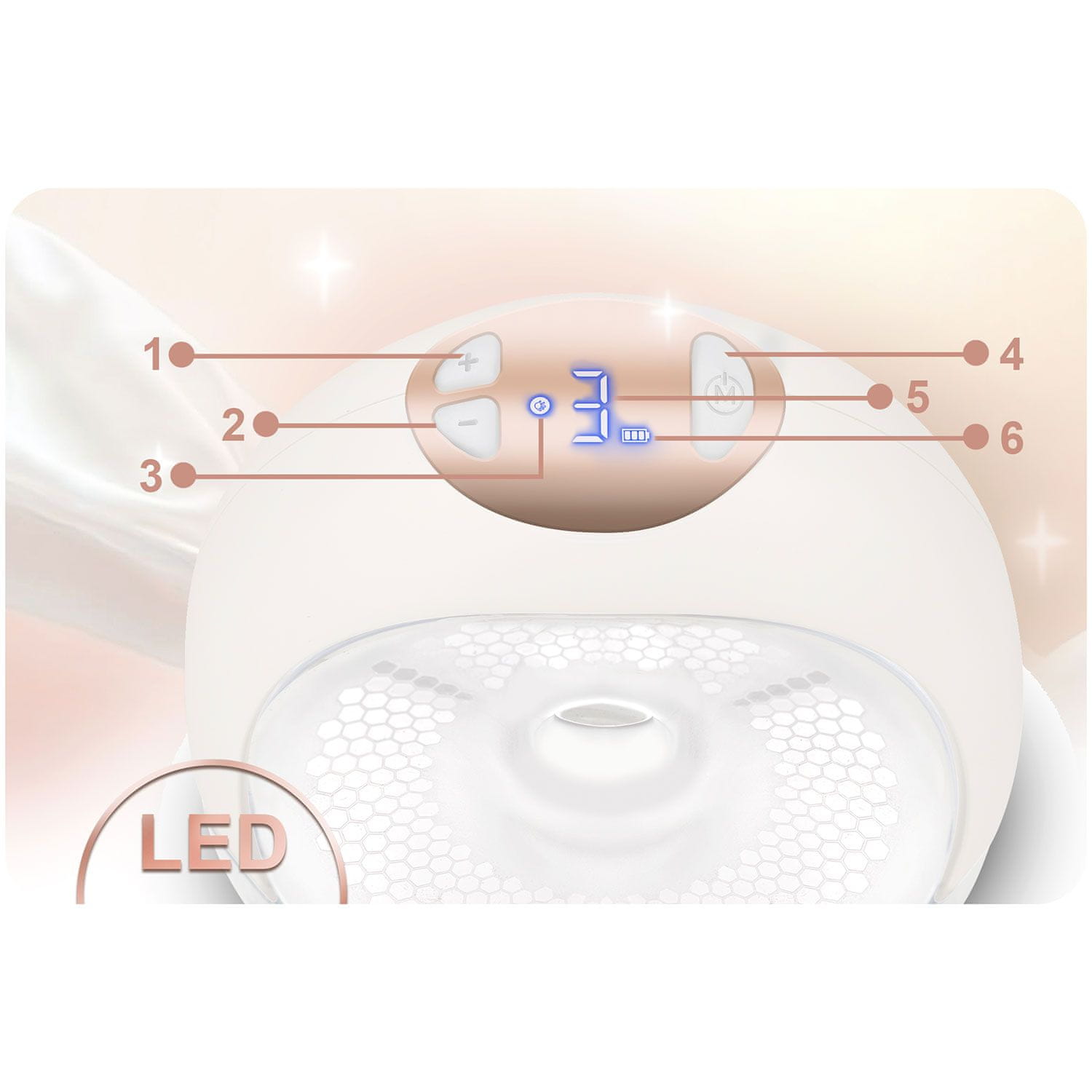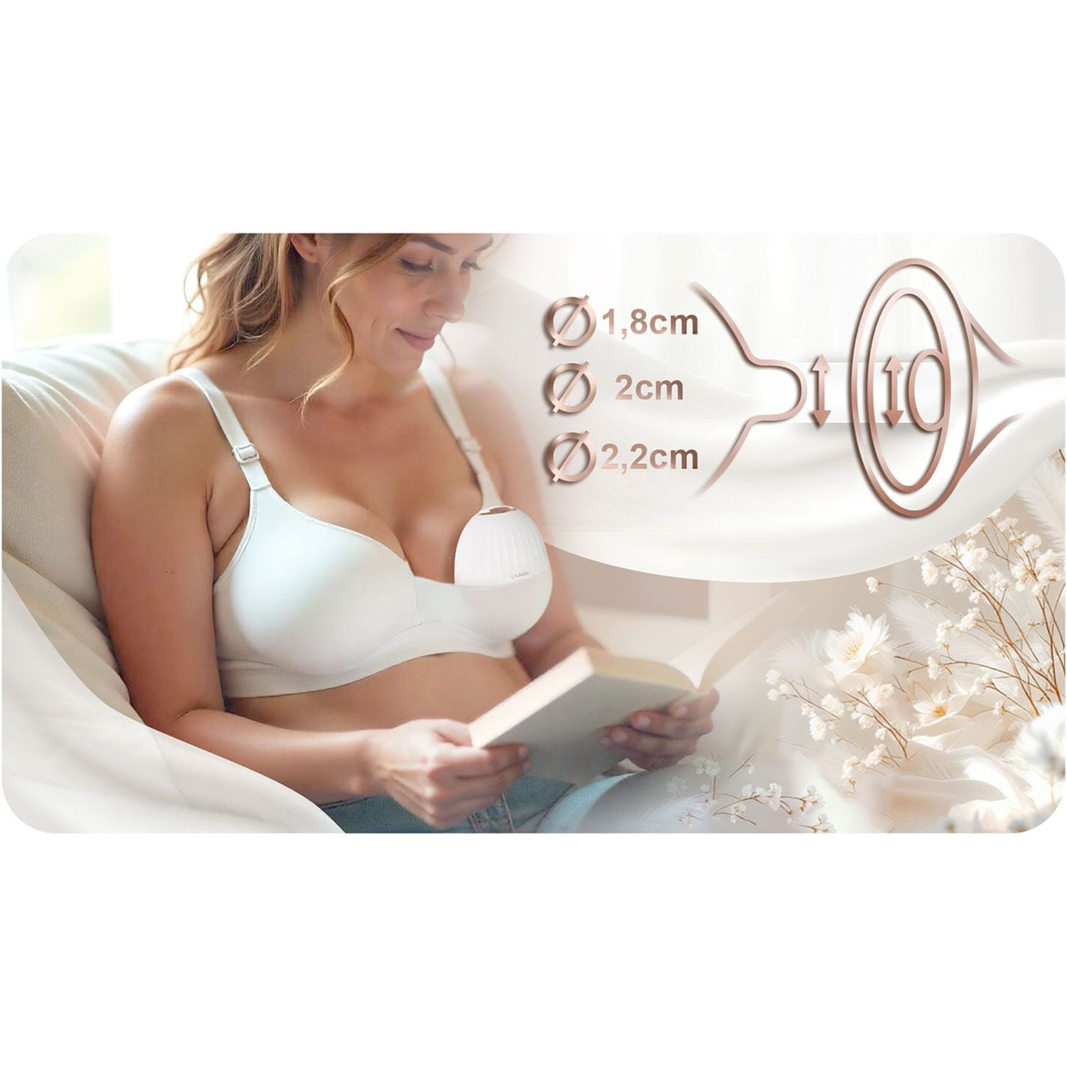 – prilagođava snagu usisavanja majčinim potrebama, omogućujući bezbolno i učinkovito izdajanje mlijeka. Jednostavno odaberite odgovarajuću razinu usisavanja. Masažni jastučići u tri veličine