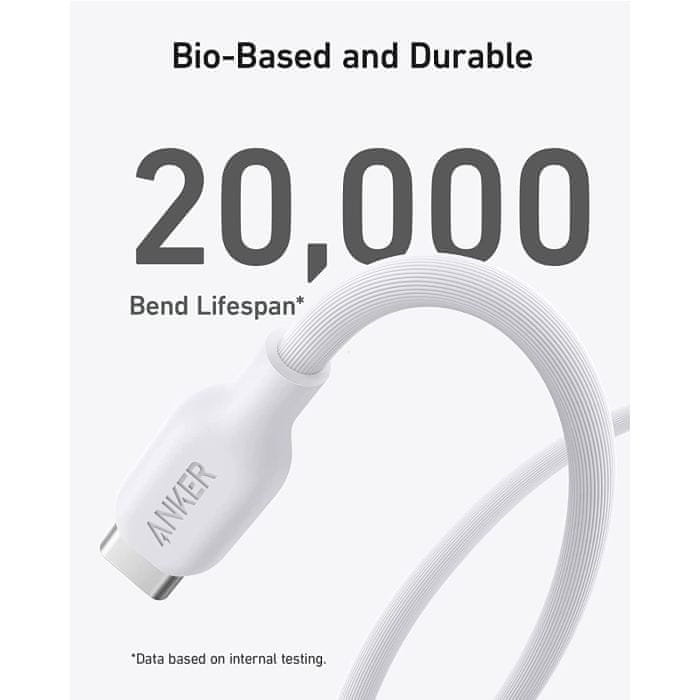 Anker 541 BIO USBC-LTG 0,9m kabel: Bio kabel za brzo punjenje, kompatibilan s većinom USB-C uređaja. Napravljen od biljnih materijala, smanjuje plastiku. Ambalaža bez plastike, 100 % reciklirana.