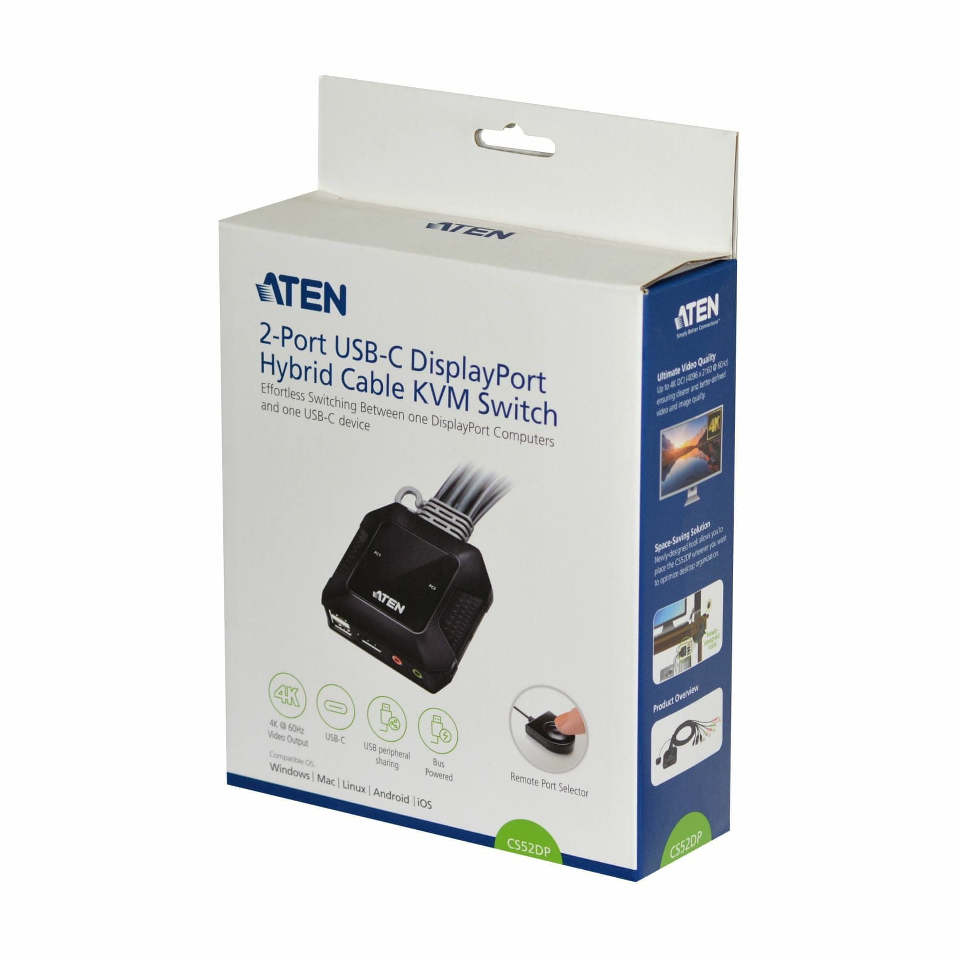 Aten KVM preklopnik 2x1 mini DP/USB TypeC s kabelima CS52DP