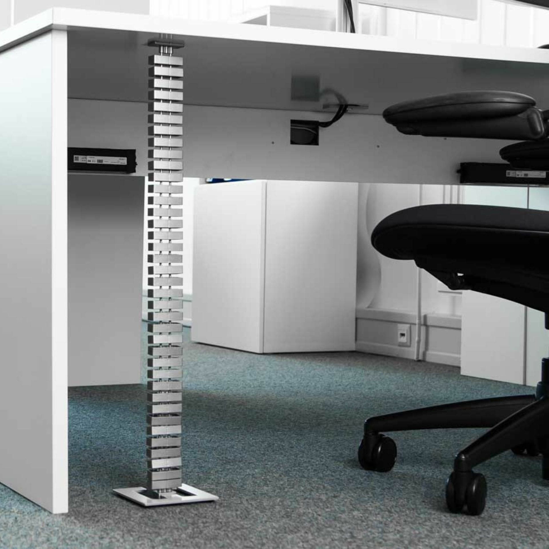 Kompaktni ali fleksibilni sustav za vertikalno vođenje srebrnih kablova, duljine 75 cm. Omogućuje optimalno vođenje kablova na radnom mjestu između stola, podnog utičnog mjesta, zidnog kanala i različitih uređaja.