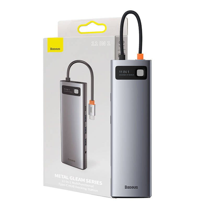 Nema li vaše prijenosno računalo dovoljno priključaka? Zanima vas povećanje njegovih mogućnosti? Lakše je nego što mislite! Baseusov 11-u-1 multifunkcionalni hub opremljen je s 3 USB 3.0, 1 USB-C, 2 HDMI, 1 VGA, 1 ethernet i 1 3,5 mm audio priključak. Također ima utore za SD i TF kartice. Podržava brzi prijenos datoteka do 5 Gbps i može prikazivati do 4K videa. Također podržava brzo punjenje PD 100 W na USB-C priključku. Odlikuje se i nevjerojatno učinkovitim odvođenjem topline i širokom kompatibilnošću. Otkrit ćete da se isplati koristiti jedan priključak na računalu da biste zauzvrat dobili čak 11 njih!