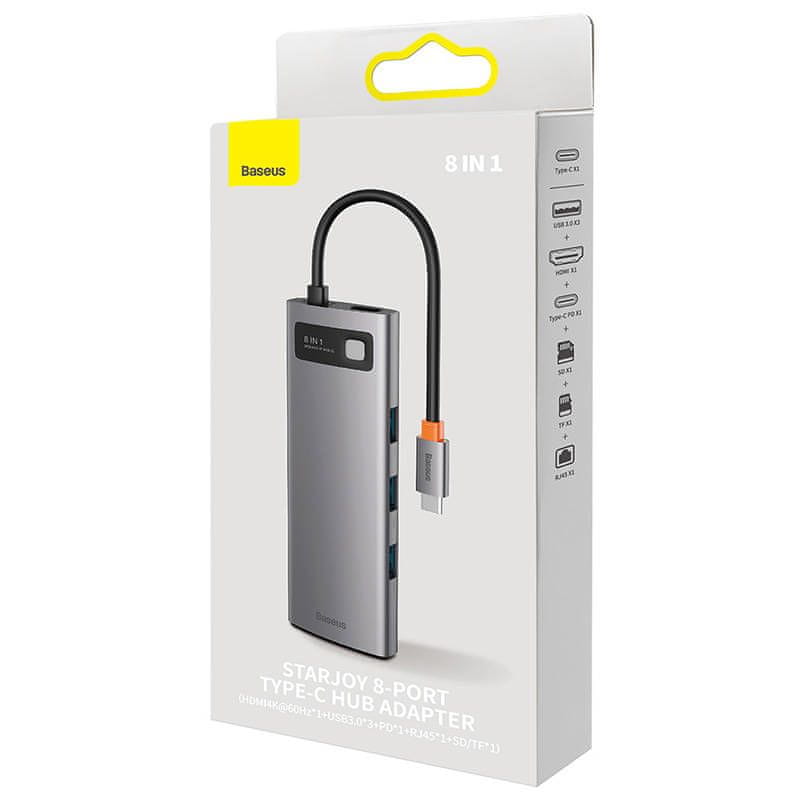 BASEUS Hub 8w1 Baseus StarJoy Metal Glam serija, USB-C na HDMI + 3 x USB 3.0 + USB-C PD + RJ45 + SD/TF