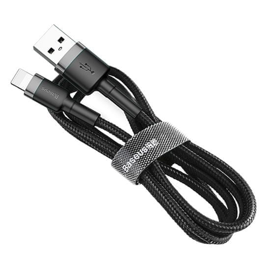 BASEUS Izdržljivi fleksibilni kabel USB Lightning kabel za iPhone QC3.0 2.4A 0.5M crno-sivi