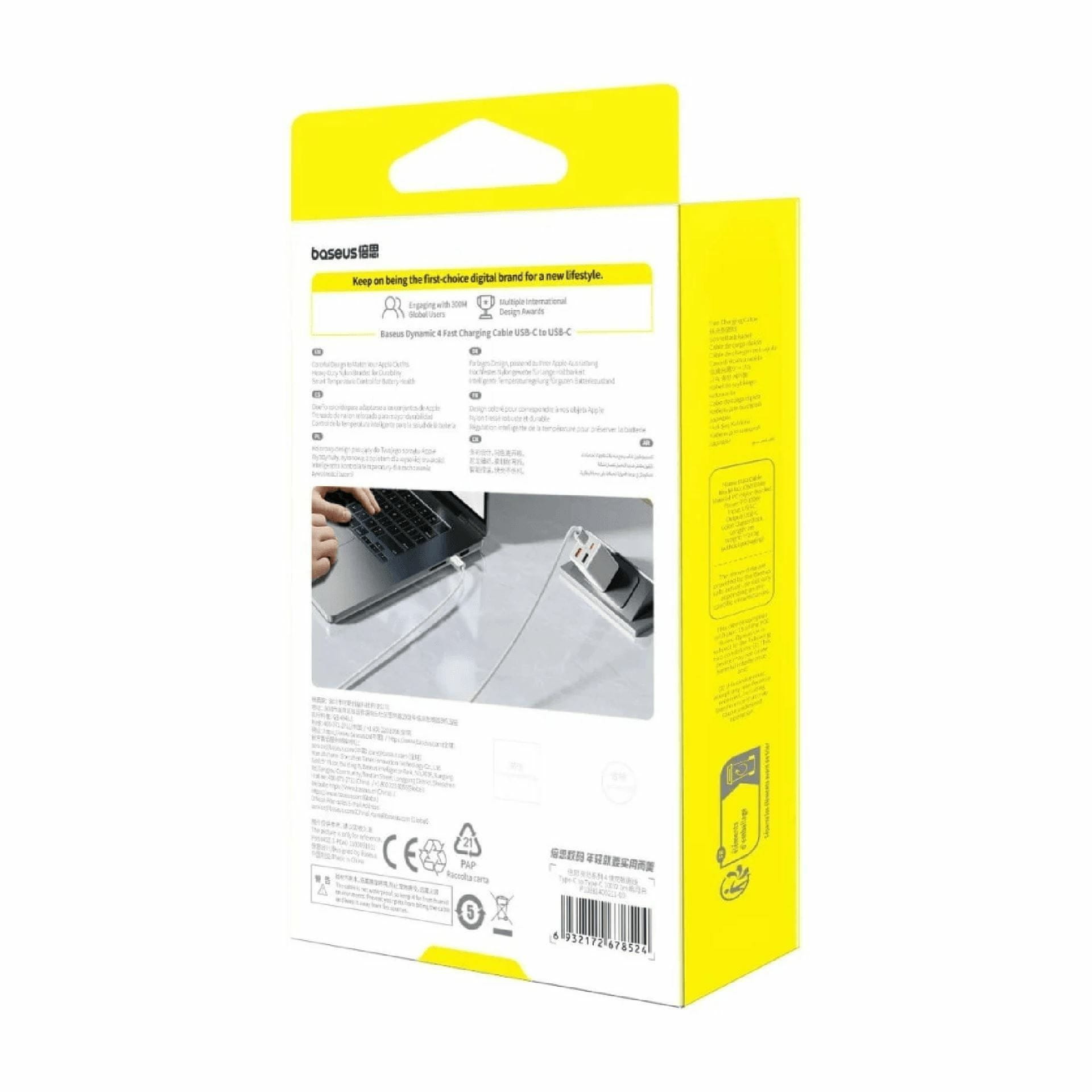 Baseus kabel USB C-C Dynamic 4, snage 100W 20V 5A, bijele boje, duljine 1m, pogodan je za punjenje svih uređaja s USB tip-C priključkom, posebno optimiziran za iPhone 15 & 16. Podrška za brzo punjenje i do 480 Mbps prijenosa podataka. Pleteni dizajn osigurava dodatnu izdržljivost i duži vijek trajan