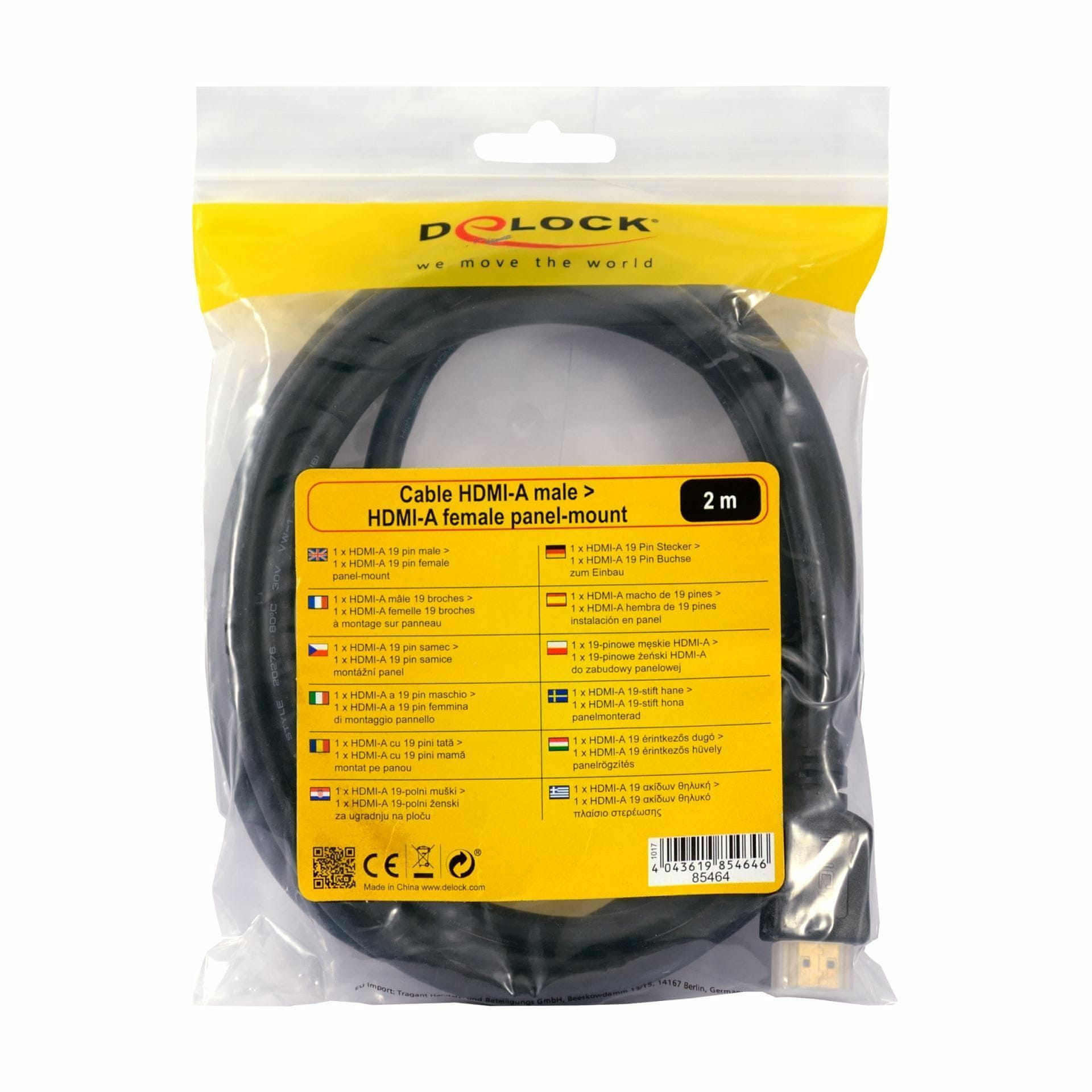 Ovaj Delock kabel omogućuje produživanje HDMI veze i može se koristiti za povezivanje različitih uređaja. Ženski priključak može se pričvrstiti pomoću dva vijka, primjerice na nosač utora, kanalicu za kabel ili kućište s odgovarajućim otvorom. Na taj način je moguće ugraditi HDMI