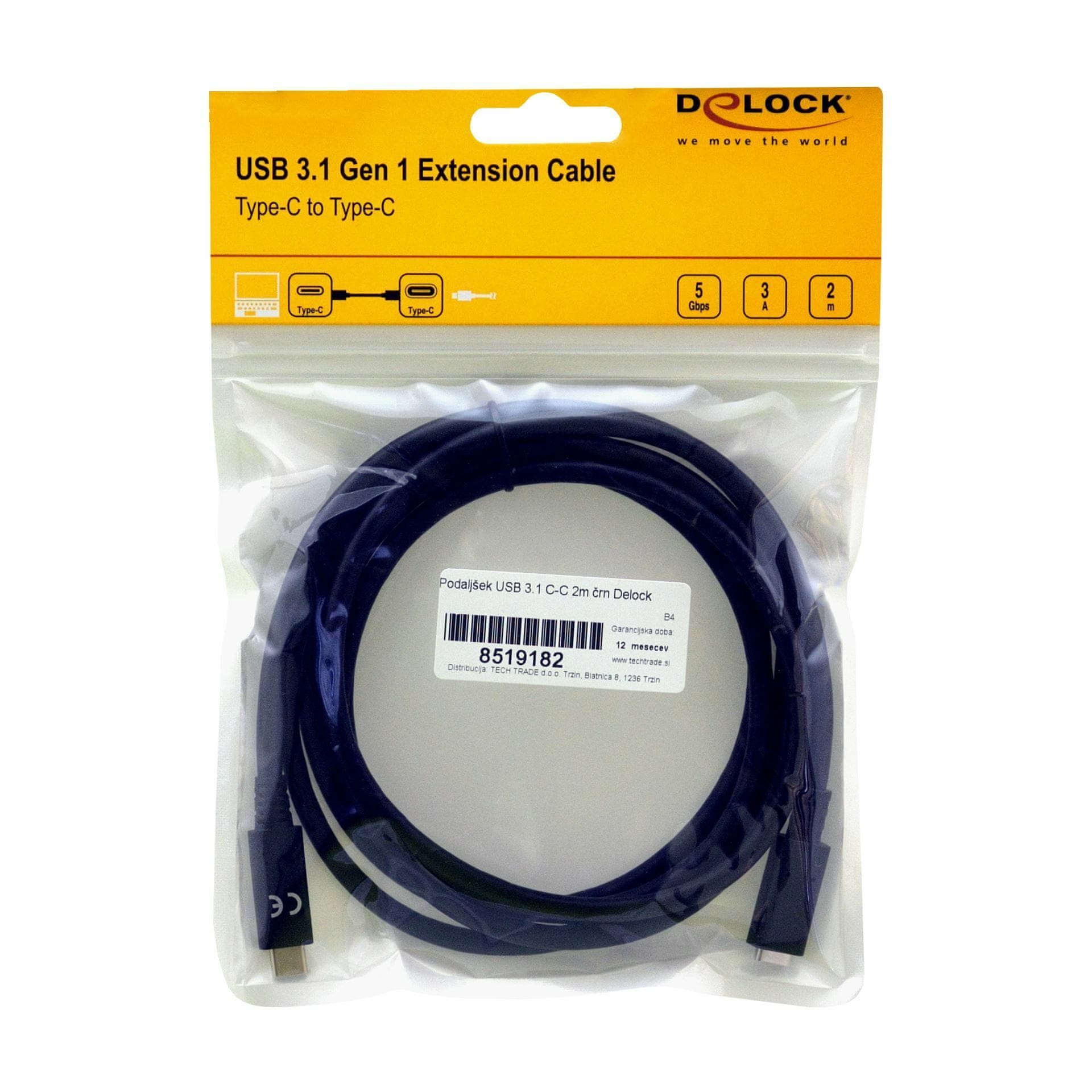 Delock USB 3.1 C-C produžni kabel 2 m crni 85542