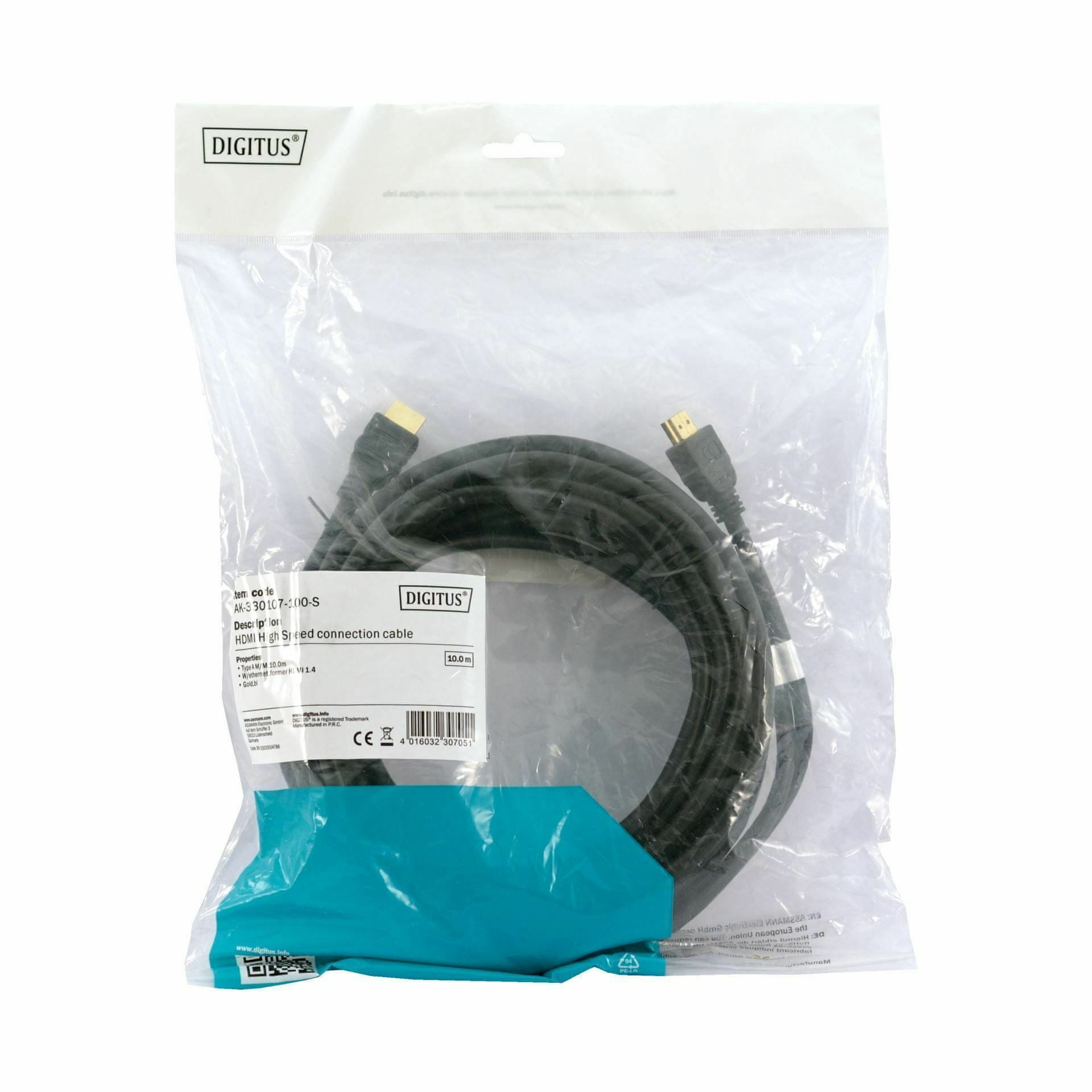 DIGITUS mrežni (ethernet) HDMI kabel za digitalno multimedijsko povezavo preko 1080p i interneta do 100Mbps, duljine 10m.