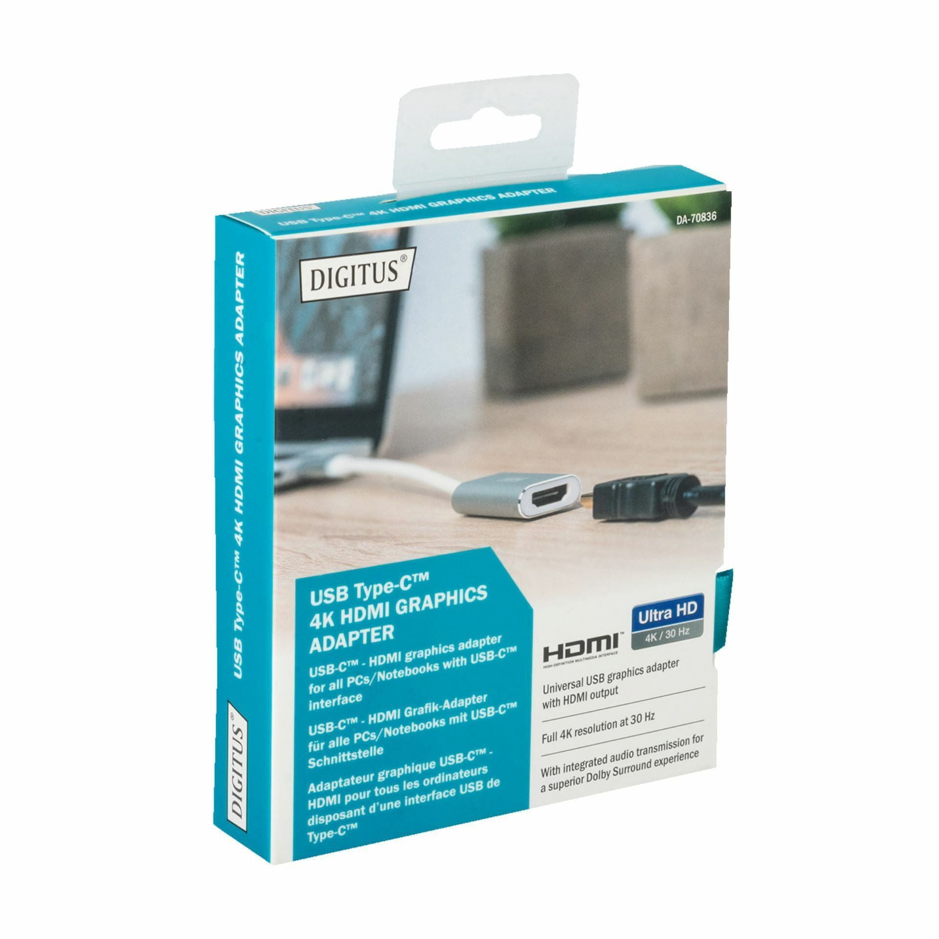 Digitus USB 3.0 tip C – HDMI 4K pretvornik, namijenjen za priključivanje svih vrsta zaslona s HDMI priključkom.