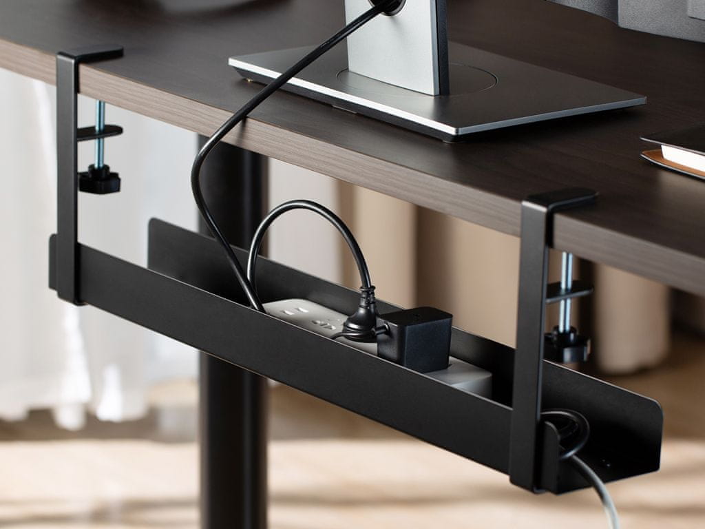 Ladica za kabele je praktično rješenje za urednu radnu okolinu. Dizajnirana je za jednostavnu montažu na stol s dvije stezaljke, što omogućuje brzo i stabilno pričvršćivanje. Pogodna je za stolove debljine od 5 do 50 mm, što osigurava široku primjenjivost na različitim radnim mjestima.