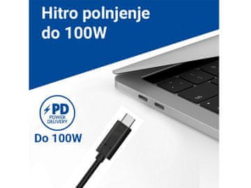 Kabel USB C-C nudi vam maksimalnu izlaznu snagu od 20V 5A, što vam omogućuje brzo punjenje pametnog telefona, tableta ili prijenosnog računala tipa C.