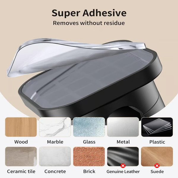 Čvrsto se pričvršćuje na ravne površine poput drva, pločica, metala i glatkih zidova.