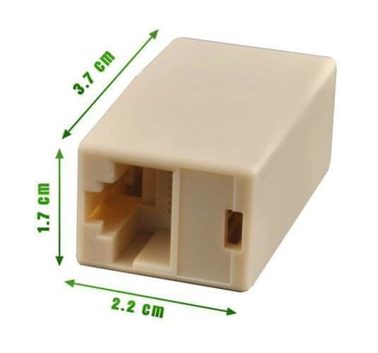 - SPECIFIKACIJA – materijal: plastika utičnica: 2× RJ45 8p8c, dimenzije (dužina / visina / širina): 3,4×1,5×2cm; težina: 6g