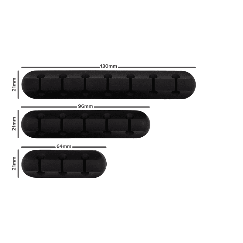 • Dimenzije: 64×21 mm (3 kabla), 96×21 mm (5 kablova) i 130×21 mm (7 kablova)