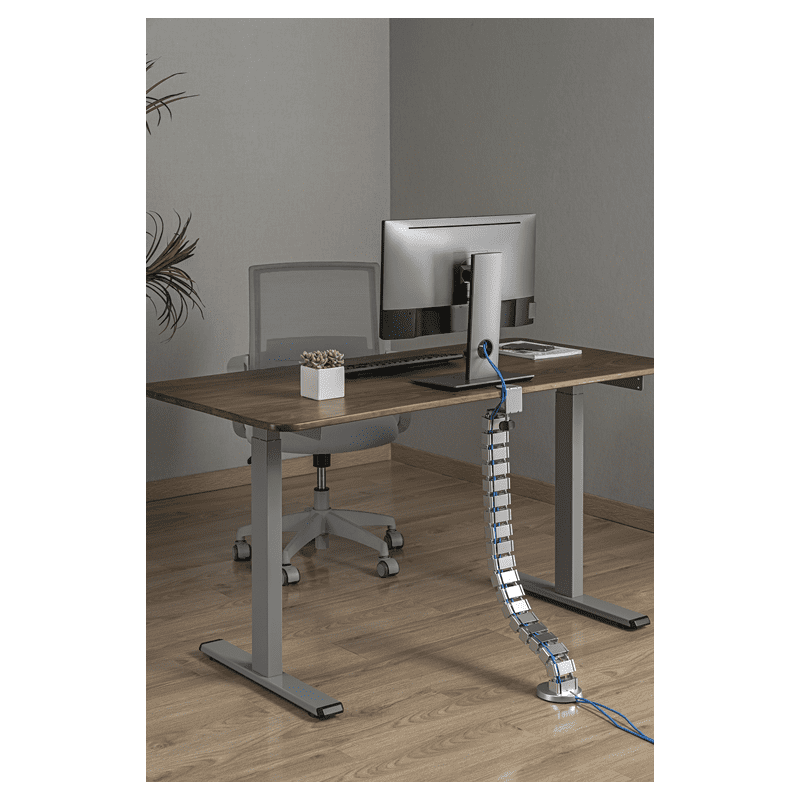 Organizator kablova MyWall HZ 43SL s podesivom duljinom do 1347 mm i pričvršćivanjem na rub stola pomoću stezaljke, srebrne boje.
