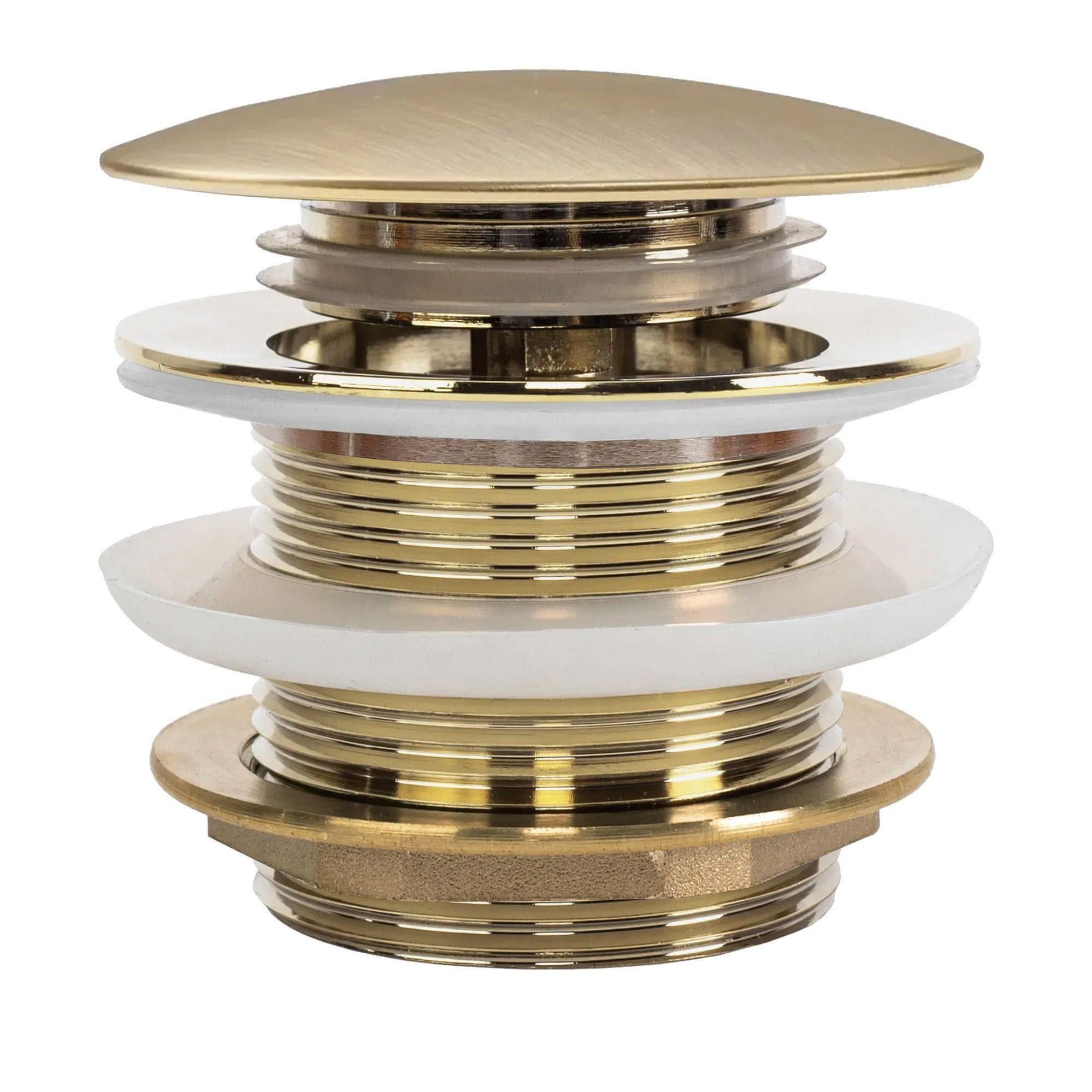 Klik-klak čep je univerzalan. Zahvaljujući posebnoj fazi proizvodnje, čep je zaštićeno od korozije, tamnjenja i promjene boje.Varijanta čepa: Bez preljevne rupe, UniverzalanMaterijal: MjedBoja: Brushed GoldJamstvo: 24 mjesecaTip sifonu: WannowyBoja: Tehnologija premazivanja: PVDkolor maskownicy: Promjer otvaranja umivaonika: Średnica otworu wanny: 48Dubina: Odobrenja: Promjer odvodne rupe: 45 mmPromjer priključka: 1.1/2 cala